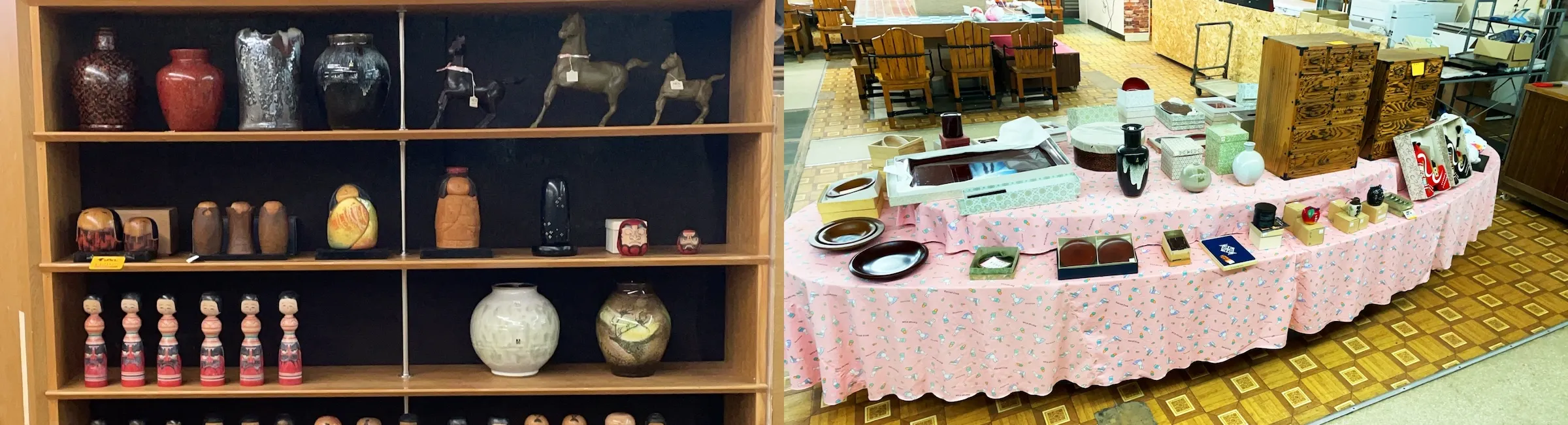 オンラインでは「髷わっぱのお弁当箱」や「津軽塗のアンティーク家具」など、民芸品の販売も行っております。